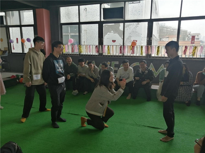 活動(dòng)精心設(shè)計(jì)了自我介紹、互動(dòng)游戲等豐富多彩的活動(dòng)環(huán)節(jié),調(diào)動(dòng)起62名青年男女們的熱情參與,在活動(dòng)開始前主持人介紹了到場嘉賓、活動(dòng)流程、進(jìn)行隨機(jī)分組,組成的4個(gè)隊(duì),每名隊(duì)員依次進(jìn)行自我介紹相互認(rèn)識(shí),推選隊(duì)長,并設(shè)計(jì)出屬于自己的隊(duì)名“乘風(fēng)破浪”、“最襯打工人”、“黑色向日葵”、“龍馬精神”,4個(gè)小隊(duì)經(jīng)過接力拼圖、T恤氹氹轉(zhuǎn)、你演我猜、射擊保齡球等符合青年人的游戲,全場氣氛一度進(jìn)入新的高潮,給青年男女們更多接觸和交流的機(jī)會(huì),也充分展現(xiàn)青年們健康向上、富有活力的良好風(fēng)貌,“最襯打工人”隊(duì)依靠大家默契的配合取得勝利。中午以自助餐的形式大家圍坐在一起,輕松愉悅的用餐氛圍,使男女青年們很快熟絡(luò)起來,并增進(jìn)了友誼。