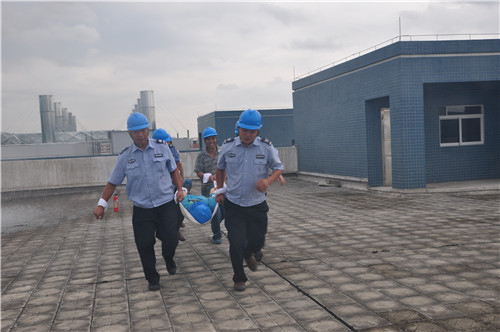 本次演練以消防重點(diǎn)車間的頂層出現(xiàn)火災(zāi)警情為模擬場景,于計(jì)劃當(dāng)日下午15:45進(jìn)行。在正式開始前,金馬義務(wù)消防隊(duì)在公司大門集結(jié),配備相關(guān)設(shè)備整齊列隊(duì),等待總指揮下達(dá)啟動(dòng)命令。時(shí)間一到,由生產(chǎn)中心高總、人力資源中心容部長示意行動(dòng)開始,保安隊(duì)長接受命令,并向待命的消防隊(duì)傳達(dá)立即到處滅火的指示。接到消息,金馬義務(wù)保安隊(duì)火速奔赴火警現(xiàn)場——距離出發(fā)點(diǎn)300多米的車間4樓頂層。僅用時(shí)2:37,撲火組已到達(dá)現(xiàn)場,根據(jù)燃燒物特性,用滅火器迅速進(jìn)行第一輪滅火。待火勢稍減,他們快速移開燃燒物,阻擾火勢蔓延,并打開消防喉進(jìn)行撲救。與此同時(shí),救護(hù)組也已到達(dá)現(xiàn)場,展開擔(dān)架轉(zhuǎn)移傷員,到達(dá)安全場所進(jìn)行搶進(jìn)。不久,火勢撲滅,在各消防小組的密切配合下,本次消防演練勝利結(jié)束。