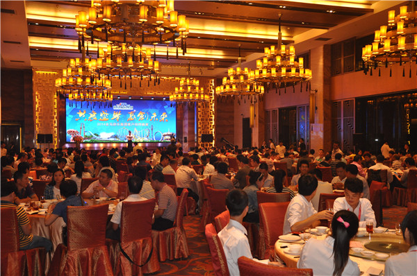 晚上市游協(xié)在金上濠舉行招待晚宴,延開百席,更邀請(qǐng)到IAAPA主席Mario先生參加。作為市游協(xié)會(huì)長(zhǎng),鄧志毅董事長(zhǎng)發(fā)表了熱情洋溢的致辭,歡迎世界各國(guó)、全國(guó)各地的客商到中山洽談、合作,同時(shí),他對(duì)中山游戲游藝產(chǎn)業(yè)充滿信心,表示本屆游博會(huì)較往屆帶來更多驚喜。隨后宴會(huì)開始,游樂業(yè)界共聚一堂,為本次游樂的盛宴舉杯共賀。