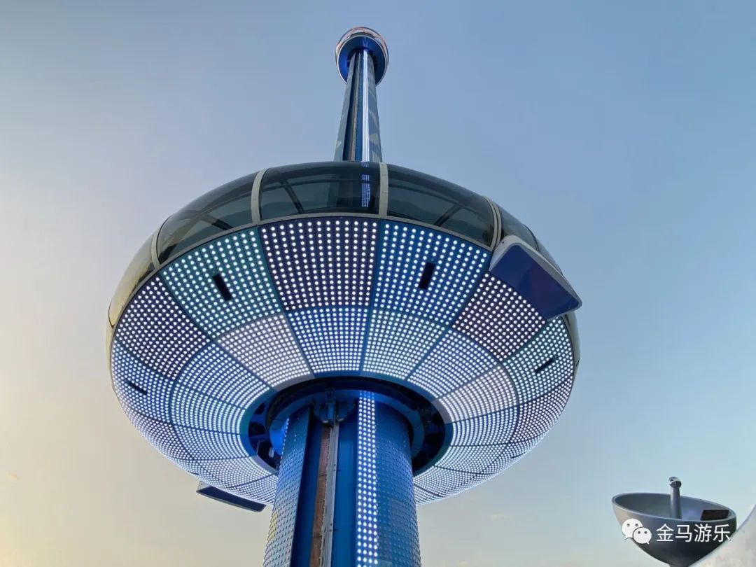 隨著“迷你世界·冒險(xiǎn)山”的開放,深圳歡樂谷與金馬游樂攜手打造的地標(biāo)項(xiàng)目——全景式高空觀景塔”星空之環(huán)”亦正式亮相。“星空之環(huán)”豎立在冒險(xiǎn)山山頂,有著65米高的圓柱塔體,極具未來(lái)感的艙體,夜幕中的百變燈效以及全天候360°絕美觀景享受,使其成為園區(qū)日夜閃耀的明星。