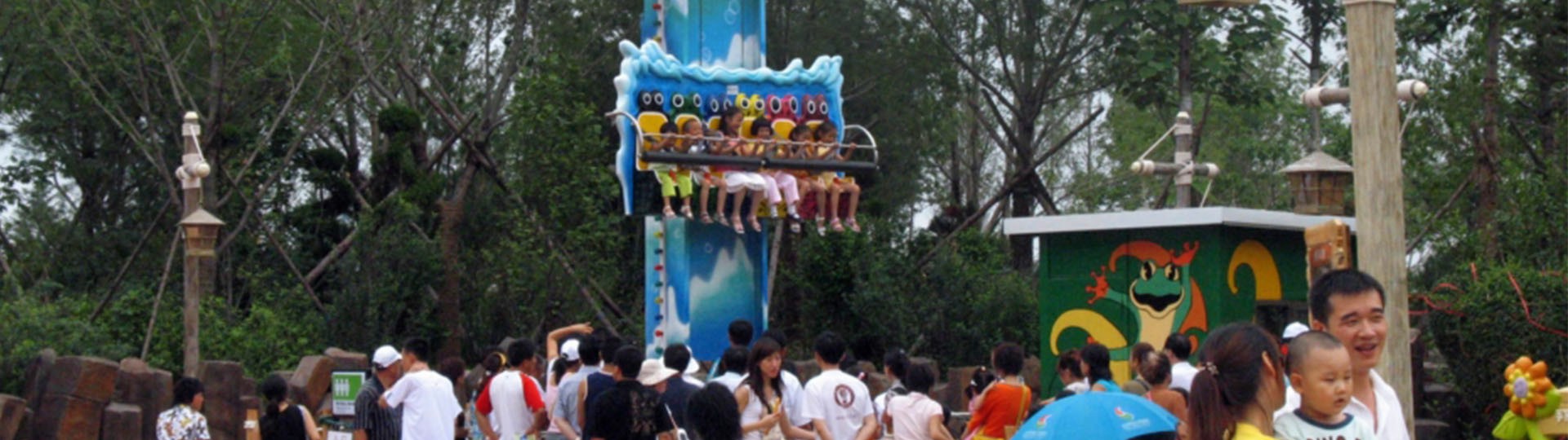 青蛙造型逼真的座艙伴隨著蛙鳴叫聲的背景音樂,沿著垂直軌道上下往復(fù)連貫跳躍運(yùn)動,幅度有大有小,令游客感受空間飛行跳躍的樂趣。