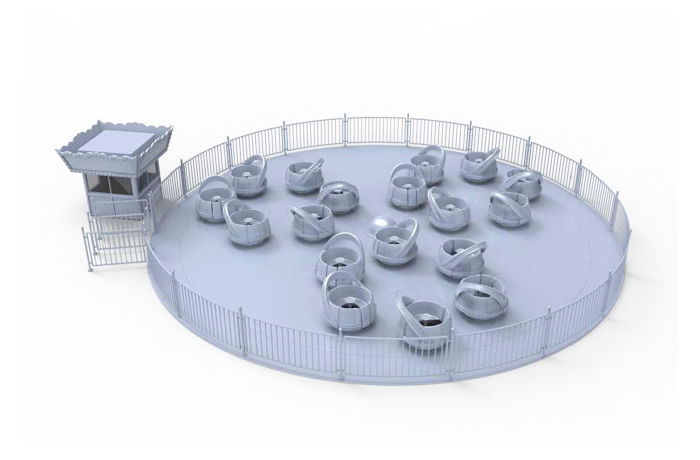 轉(zhuǎn)轉(zhuǎn)杯設(shè)備是由軌道、大盤、小盤及杯體組成,動物主題外觀,乘客坐在杯中體驗多重復(fù)合轉(zhuǎn)動所帶來的旋轉(zhuǎn)樂趣。