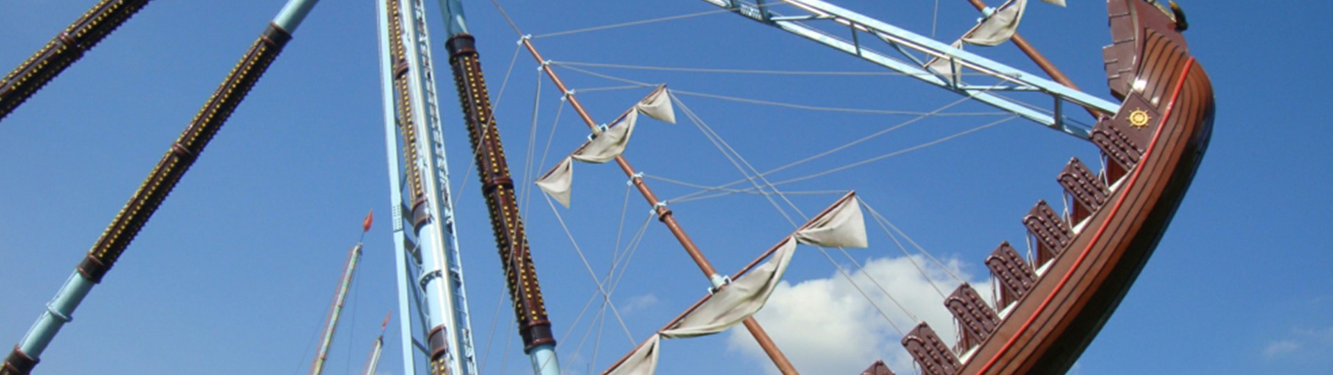 海盜船繞水平軸來回?cái)[動(dòng),模擬海盜乘風(fēng)出海的場(chǎng)景,交替而至的失重 和超重感讓乘客盡情體驗(yàn)搖擺的樂趣。14排座椅,承載56人。