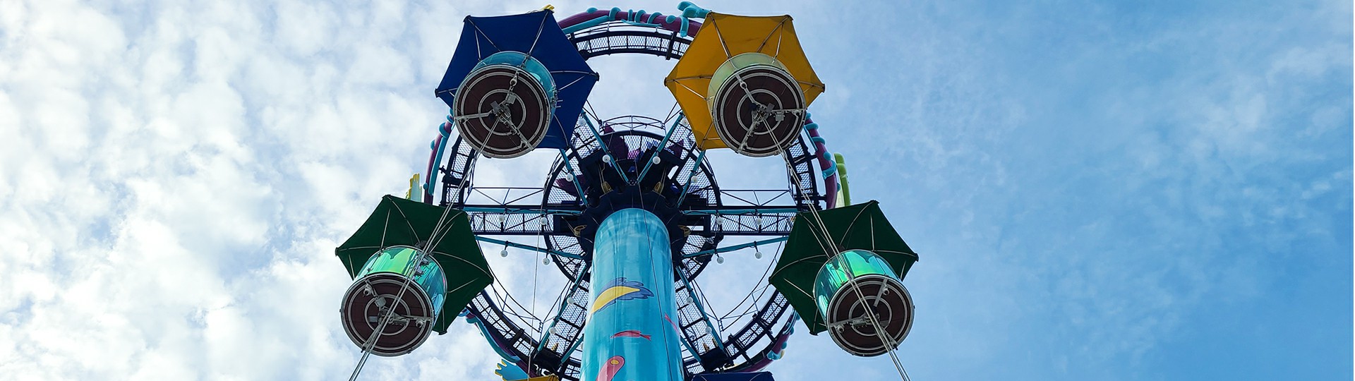 跳傘塔是一項(xiàng)使乘客吊籃沿豎直方向做上下往復(fù)運(yùn)動的設(shè)備。外觀猶 如打開的傘體,絢爛多彩,使乘客在吊籃內(nèi)愜意欣賞周邊風(fēng)景。