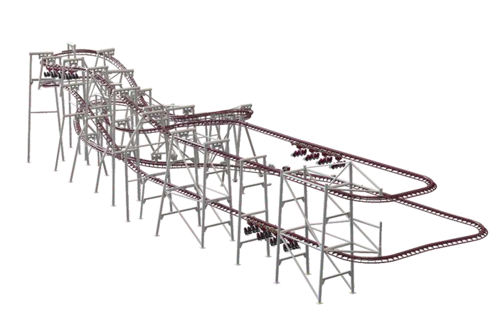 彈射懸掛過山車是一款懸掛式觀影過山車,動力采用LSM電磁彈射技術(shù)驅(qū)動,過山車經(jīng)典玩法元素融入影視特效,并可與其它設(shè)備融合打造更具吸引力的主題項目。在影視布景區(qū),車體可邊前進邊旋轉(zhuǎn),乘客身臨其境地觀覽美景或聆聽故事;在彈射區(qū)、制動區(qū)、自由滑行區(qū),車體旋轉(zhuǎn)功能關(guān)閉并鎖緊,乘客進入加速、俯沖、飛翔、失重等多重刺激體驗中,兩段觀影區(qū)和兩段彈射滑行區(qū)交替穿插,實現(xiàn)觀影娛樂與滑行刺激的雙重沉浸感受。