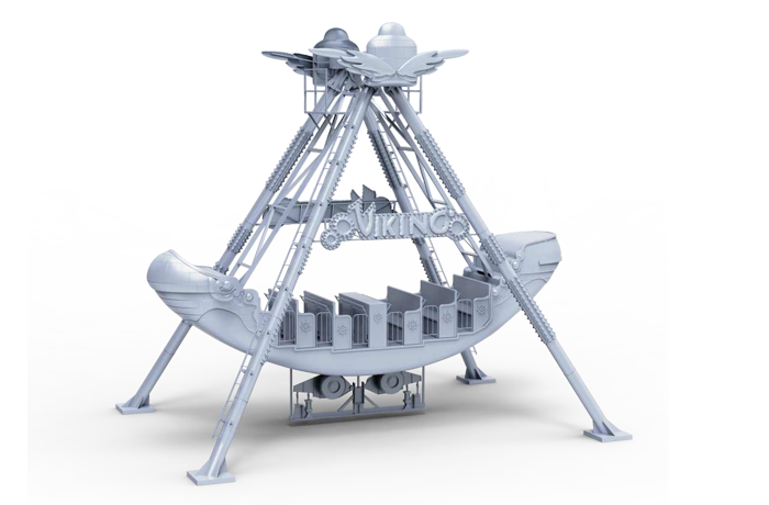 海盜船繞水平軸來回擺動,模擬海盜乘風出海的場景,交替而至的失重和超重感讓乘客盡情體驗搖擺的樂趣。6排座椅,承載24人。