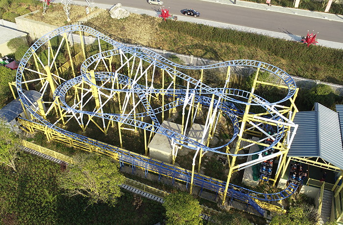 摩托過??的座艙以摩托賽?為造型,采?機(jī)械彈射?式,滑?段軌道模擬多重轉(zhuǎn)彎路況,配合適當(dāng)?shù)能壍纼A?,使乘客在最?程度上體驗(yàn)?zāi)ν??賽的驚險(xiǎn)與刺激。路軌采?分層?式布置,有效縮?設(shè)備占地?積。