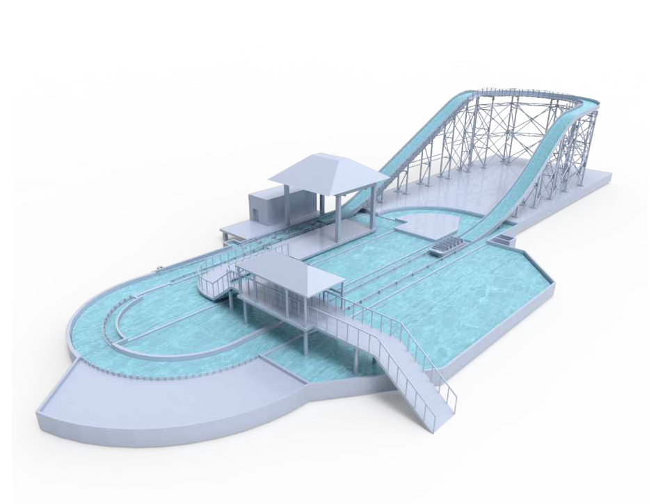 激流勇進設(shè)備提升?度16?,軌道蜿蜒??,抵達?坡制動段后經(jīng)過減速到達下沖段,進?快速下沖。乘客在游玩過程中,體會?速沖浪、失重、離?、浪激等多重刺激,其樂?窮。