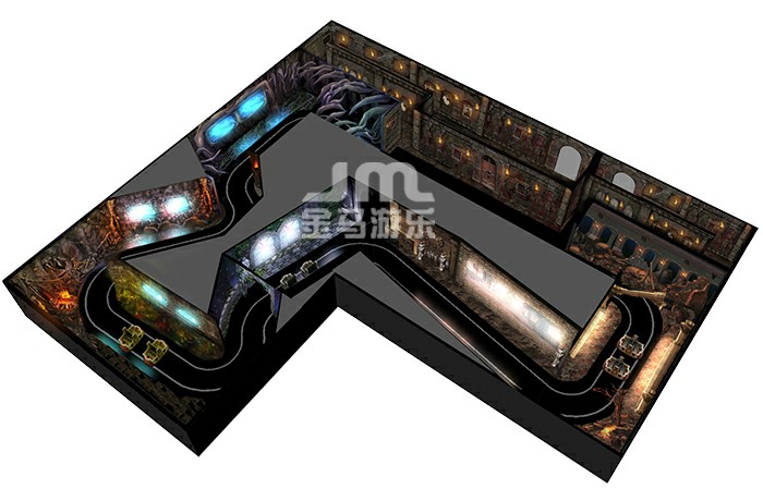 交互式黑暗乘騎游樂設(shè)備,是融合交互游戲、360度旋轉(zhuǎn)軌道車、主題景觀、多種特效等尖端技術(shù)于一體的室內(nèi)體驗娛樂項目,讓乘客在逼真的虛擬場景中進行角色對抗,增加交互體驗。