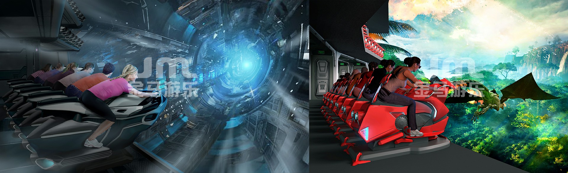 騎跨式飛行影院以騎跨方式代替?zhèn)鹘y(tǒng)座椅,屬國(guó)內(nèi)首創(chuàng),采用獨(dú)立多自由度座椅,使每一位乘客擁有著相同的感觀,結(jié)合提升體驗(yàn)效果;結(jié)合高清球幕電影以及震撼逼真的科技特效,為乘客打造一場(chǎng)身臨其境的沉浸式游樂體驗(yàn)。