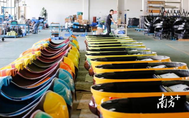 在金馬游樂港口鎮(zhèn)廠區(qū)的生產(chǎn)車間內(nèi),一些制作完成的碰碰車外殼碼放整齊,等待出庫。回溯過去30余年,這個小小的游藝車?yán)锍休d了“金馬”的創(chuàng)業(yè)史。