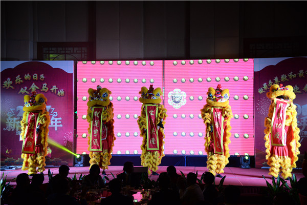 在主持人和公司全體員工的倒計(jì)時(shí)聲中,我們精彩的晚會(huì)開始了!伴隨著陣陣鑼鼓,五頭栩栩如生的獅子搖頭擺尾,神氣十足,以一場(chǎng)歡騰的獅舞拉開了此次盛會(huì)的序幕。LED大屏播放了“2016金馬形象篇”短片,記錄了過去一年里公司在形象、管理、產(chǎn)品、投資四方面有過的精彩瞬間!隨后鄧志毅董事長(zhǎng)講話,總結(jié)了2016年度集團(tuán)公司所取得的輝煌成就,并指出了過去工作中需要改進(jìn)的方面;對(duì)于明年的工作部署及戰(zhàn)略規(guī)劃,鄧總也作了詳細(xì)的闡述,讓我們更加信心滿滿,對(duì)金馬的明天充滿希望和期待!進(jìn)入頒獎(jiǎng)環(huán)節(jié),從年度技能競(jìng)賽評(píng)優(yōu)、年度精益評(píng)優(yōu)到公司年度獎(jiǎng)項(xiàng)評(píng)優(yōu),100多名與金馬攜手并進(jìn)、唇齒相依的人,他們?yōu)榻瘃R的發(fā)展付出了艱辛和努力,在這個(gè)特別的日子里,公司為他們舉辦了隆重的表彰儀式,并由公司高層領(lǐng)導(dǎo)為他們逐一頒發(fā)榮譽(yù)證書和獎(jiǎng)金。在一片喜慶祥和的氣氛中,公司領(lǐng)導(dǎo)上臺(tái)祝酒,舉杯相慶這個(gè)歡樂美好的時(shí)刻,并感謝全體金馬人多年來的一路陪伴和辛勤付出。
