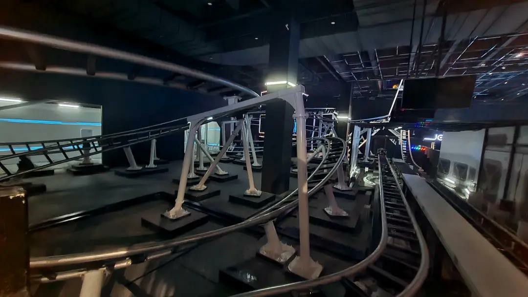 “炫酷飛馳”全程位于室內,其游玩軌跡設計也是元素豐富、處處用心,除了兩段彈射發(fā)射的極致體驗外,還結合了換軌、3段U型回蕩的軌道,值得一提的是,該過山車的車體是采用無動力自旋式車體,配合腿部壓桿,極大提升了乘客的自由感和舒適度,游玩過程中游客相對而坐,看不到軌道盡頭,游客在未知的旅途中完美體驗到了往復彈射、貼地高速彎道,扭轉,側掛,S彎扭轉等這些現(xiàn)代大型過山車的游玩元素,結合“聲、光、電”的造景,創(chuàng)造了十分復雜而驚艷的乘坐體驗!